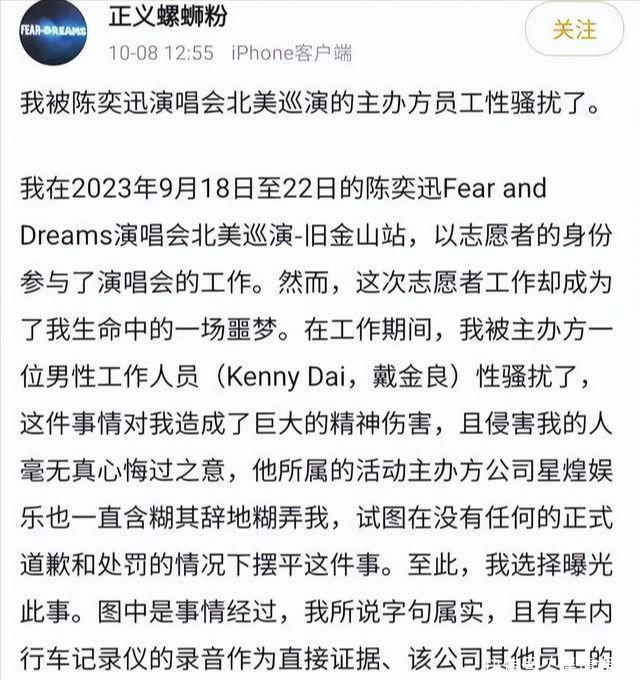 在文娱圈,每一个隐微的动态皆可能成为公众热心的焦点。近日,相干陈奕迅在好意思国旧金山献技时期触及的女志愿者被职责主说念主员性侵争议事件,更是引起了庞杂粉丝和公众的热烈热心和磋磨。