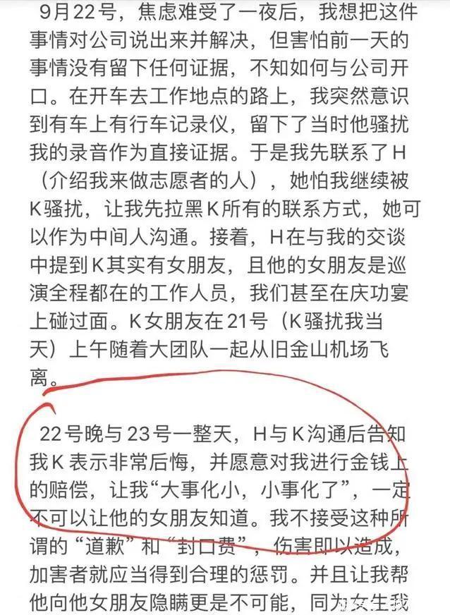 此次的事件不单是是对受害者的伤害,更是对通盘参与此次献技的东说念主员,相当是关于其他的女性职责主说念主员和志愿者的警示。